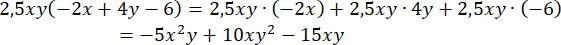 Pomnóż każdy wyraz sumy przez 2,5xy: