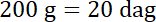 W tym zadaniu musisz zamienić wagę w gramach na dekagramy.