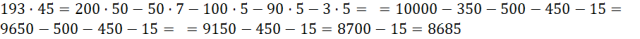 W tym zadaniu musisz wykonać mnożenie 193 ⋅ 45 i przedstawić je za pomocą rysunku.