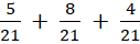 Dodaj do siebie liczniki (nad kreską ułamkową) i pozostaw ten sam mianownik (pod kreską ułamkową).