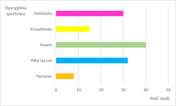 Diagram słupkowy przedstawiający liczebność poszczególnych dyscyplin sportowych