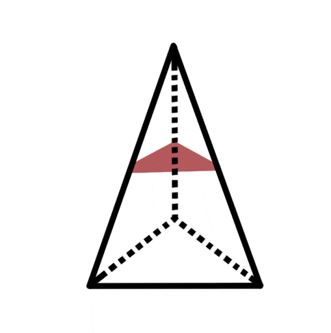 Przekrój zawierający środki trzech krawędzi wychodzących z wierzchołka ostrosłupa – zaznacz środki krawędzi bocznych i połącz je.