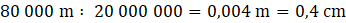 Jeśli długość rzeczywista jest w skali 1 : 20000000, to znaczy, że wymiary zostały zmniejszone 20000000 razy.