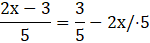 Najpierw pomnóż obustronnie równanie przez 5, aby ułatwić sobie obliczenia, a następnie przenieść wyrażenia z x na jedną stronę, a pozostałe wyrażenia na drugą: