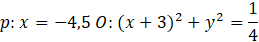 Wyznacz ilość punktów przecięcia prostej p: x = -4,5 z okręgiem o równaniu