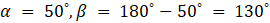 Z własności kątów wierzchołkowych i przyległych obliczamy miary narysowanych kątów: