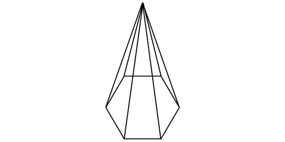 Wysokość ostrosłupa opada na środek ciężkości figury w podstawie, więc jest to ostrosłup prosty, a podstawą jest sześciokąt.