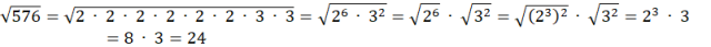 576 = 2 ∙ 2 ∙ 2 ∙ 2 ∙ 2 ∙ 2 ∙ 3 ∙ 3