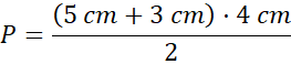 Pole trapezu obliczamy dodając do siebie długości podstaw, mnożąc to przez wysokość, a cały wynik dzieląc przez 2.