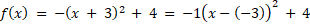 Wyznacz zbiór wartości oraz współrzędne wierzchołka funkcji kwadratowej f(x) = – (x + 3)2 + 4.