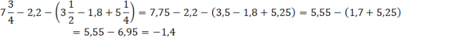 Działanie zacznij od zamiany wszystkich ułamków zwykłych na dziesiętne. Dokonaj obliczeń zgodnie z kolejnością działań.