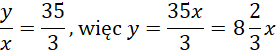 Wiadomo, że x i y są wprost proporcjonalne – to znaczy, że ich iloraz jest stały. Zapisz proporcję, a następnie wyznacz wzór na y.