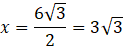 Odcinek x jest wysokością trójkąta tworzącego sześciokąt foremny.