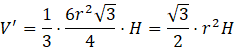 Wykorzystaj wzory na objętość stożka, ostrosłupa oraz zależności między krawędziami charakterystycznymi w sześciokącie foremnym.