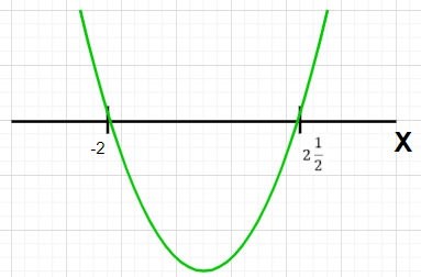 Zaznacz na osi OX rozwiązania równania. Naszkicuj parabolę skierowaną ramionami do góry, przechodzącą przez te punkty. Nie musisz wyznaczać wierzchołka paraboli.