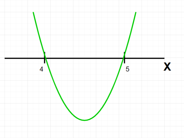 Zaznacz na osi OX rozwiązania równania. Naszkicuj parabolę skierowaną ramionami do góry, przechodzącą przez te punkty. Nie musisz wyznaczać wierzchołka paraboli.