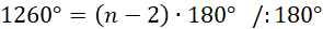 W tym zadaniu należy ile boków ma wielokąt foremny o sumie miar kątów wewnętrznych równych 1260°.