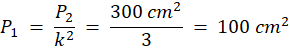 Wyznacz pole powierzchni trójkąt T1, wiedząc, że trójkąt T2 o polu P2 = 300 cm2 jest podobny do niego w skali k =