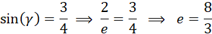Znając wartość funkcji sinus możesz wyznaczyć długość boku e, ponieważ tutaj