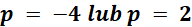 Aby obliczyć możliwe wartości p, podstaw dane do wzoru na długość odcinka. Następnie uprość wyrażenie.