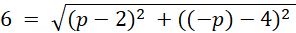Ustal, jaką wartość może przybrać p, aby warunki: ? A = (2,4), B = (p,-p), |AB| = 6 były spełnione.