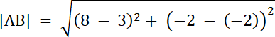 Oblicz długość odcinka AB, korzystając ze wzoru na odległość między dwoma punktami: