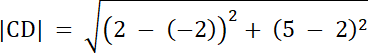 Oblicz długość odcinka CD, korzystając ze wzoru na odległość między dwoma punktami: