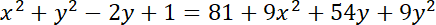 Szukanym zbiorem punktów jest okrąg o środku w punkcie
