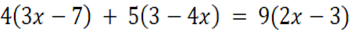 Należy pomnożyć różnice algebraiczne przez liczby je poprzedzające. Następnie należy przenieść niewiadome na lewą stronę równania a liczby na prawą stronę równania. Na koniec należy podzielić równanie przez liczbę przy x.