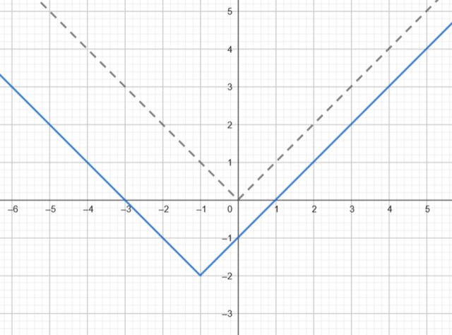 . Następnie każdy punkt znajdujący się na powstałym wykresie przesuń o 1 jednostkę w lewo i 2 jednostki w dół, aby powstał wykres szukanej funkcji
