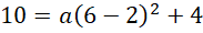 , o której wiadomo, że jej wykresem jest parabola o wierzchołku W(2,4) przechodząca przez punkt P(6,10).