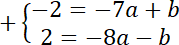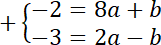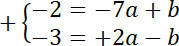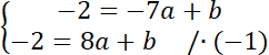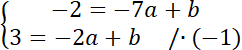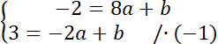 Współrzędne punktów A i B podstaw pod powyższe równanie. Zauważ, że powstanie układ dwóch równań z dwoma niewiadomymi. Całe drugie równanie pomnóż przez -1, aby współczynniki przy