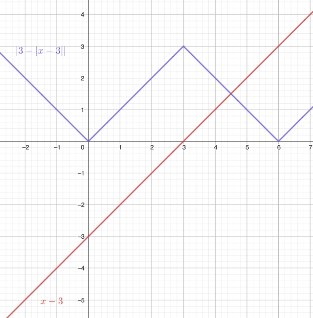 Teraz narysuj wykres funkcji (Funkcję otrzymano poprzez symetryczne odbicie wykresu funkcji f względem osi OX tej części wykresu, która leży pod osią OX.) Następnie odbij otrzymaną funkcję względem osi OX i przesuń otrzymany wykres o 3 jednostki w górę.