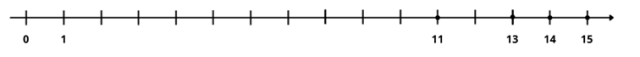 W tym podpunkcie jest więcej możliwych poprawnych odpowiedzi. Liczby naturalne większe od liczby 7 i większe od liczby 10 to takie, które znajdują się po prawej stronie kreski na osi liczbowej oznaczonej jako 10.