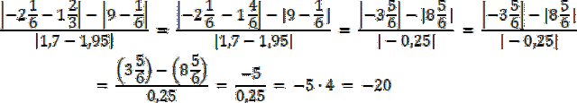 Aby rozwiązać to zadanie, należy najpierw zamienić ułamki zwykłe w liczniku na ułamki o mianowniku 6, następnie wykonać działanie na liczbach. Potem zweryfikować je pod kątem czy są nieujemne, czy ujemne i wyciągnąć z wartości bezwzględnej i wykonać mnożenie tych liczb. Otrzymana liczba to–20 i jest liczbą całkowitą.