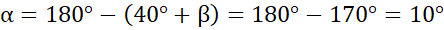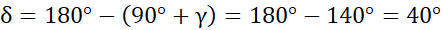 Pamiętaj, że w trapezie równoramiennym kąty przy podstawach są takie same, ponadto suma kątów przy jednym ramieniu wynosi 180°. W tym przykładzie na początek musisz obliczyć miarę kąta β – wynosi ona tyle co suma kątów przy drugim wierzchołku tej podstawy. Następnie wylicz miarę kąta γ: odejmij od 180° kąty 40 i 90 stopni. Potem wylicz miarę kąta δ – pamiętaj, że suma miar kątów w trójkącie wynosi 180°. Na koniec oblicz miarę kąta α, także zauważ, że jest to kąt w trójkącie.
