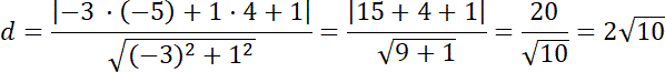 Odległość punktu P(x0, y0) od prostej l o równaniu ogólnym: Ax + By + C = 0 wyraża się za pomocą wzoru:
