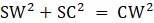 Trójkąt SCW to trójkąt prostokątny o przyprostokątnych SW i SW oraz przeciwprostokątnej CW. Zachodzi w nim twierdzenie Pitagorasa.