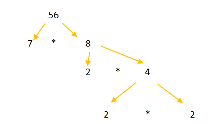 Wypełnij luki w drzewku i napisz liczbę 56 w postaci iloczynu liczb pierwszych.