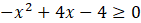Aby rozwiązać nierówność, przekształć lewą stronę za pomocą wzoru skróconego mnożenia, a następnie pomnóż nierówność obustronnie razy -1 (pamiętając o zmianie znaku). Kwadrat dowolnej liczby rzeczywistej jest zawsze liczbą nieujemną, więc jedynym rozwiązaniem nierówności jest x, dla którego lewa strona przyjmuje wartość 0.