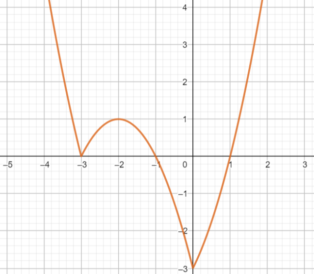 Aby naszkicować wykres funkcji, podziel jej dziedzinę na dwa przedziały w zależności od znaku wyrażenia pod wartością bezwzględną. Następnie w każdym przedziale uprość wzór przez opuszczenie wartości bezwzględnej i narysuj wykres otrzymanej funkcji kwadratowej.