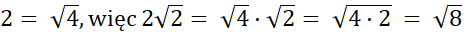 Zapisz liczbę całkowitą jako pierwiastek i zastosuj zasadę mnożenia pierwiastków. Jeśli mnożymy lub dzielimy dwa pierwiastki jednakowych stopni, to możemy zapisać je pod jednym pierwiastkiem.