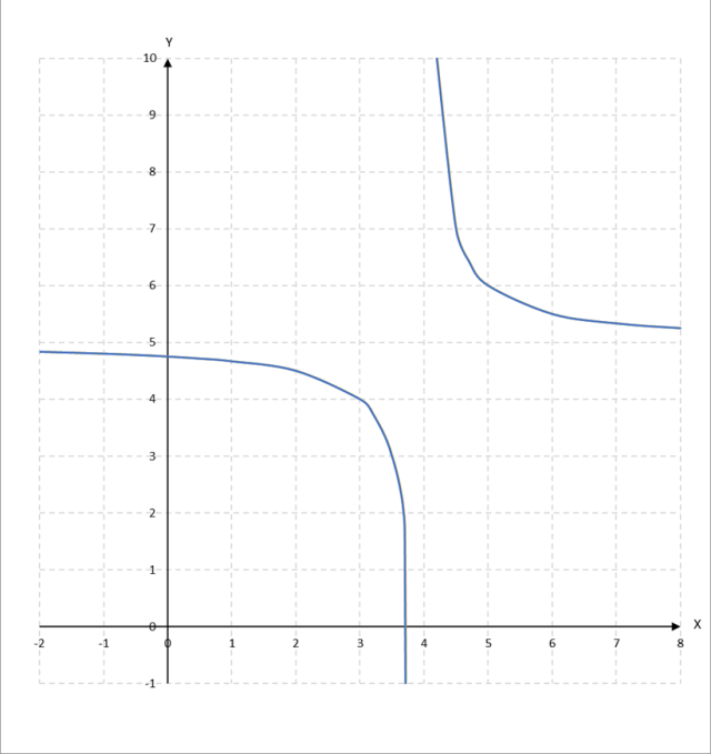 Wykres funkcji oznaczony niebieską linią ma postać y =
