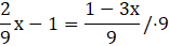 Najpierw pomnóż obustronnie równanie przez 9, aby ułatwić sobie obliczenia, a następnie przenieść wyrażenia z x na jedną stronę, a pozostałe wyrażenia na drugą: