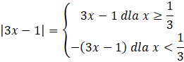 będzie równe 0, więc korzystając z definicji wartości bezwzględnej zapisujemy: