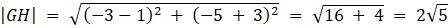 Długość odcinka w tym przypadku to odległość między punktami, obliczmy ją ze wzoru: