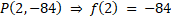 Zauważmy, że skoro punkt P(2, –84) należy do wykresu paraboli to zachodzi f(2) = –84. Następnie obliczamy współczynnik a i wyznaczamy postaci iloczynową i ogólną.