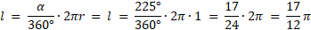 Oblicz długość łuku wyznaczonego na okręgu o promieniu 1 przez kąt środkowy o mierze 225°.