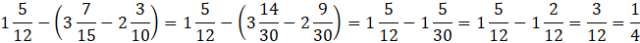 Działanie zacznij nawiasu. Sprowadź ułamki do wspólnego mianownika, a następnie je odejmij. Potem zrób to samo poza nawiasem.