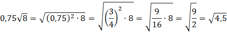 Włączając czynnik pod pierwiastek musisz przemnożyć całe wnętrze pierwiastka przez kwadrat włączanego czynnika. Dla ułatwienia zamień ułamek dziesiętny na zwykły.